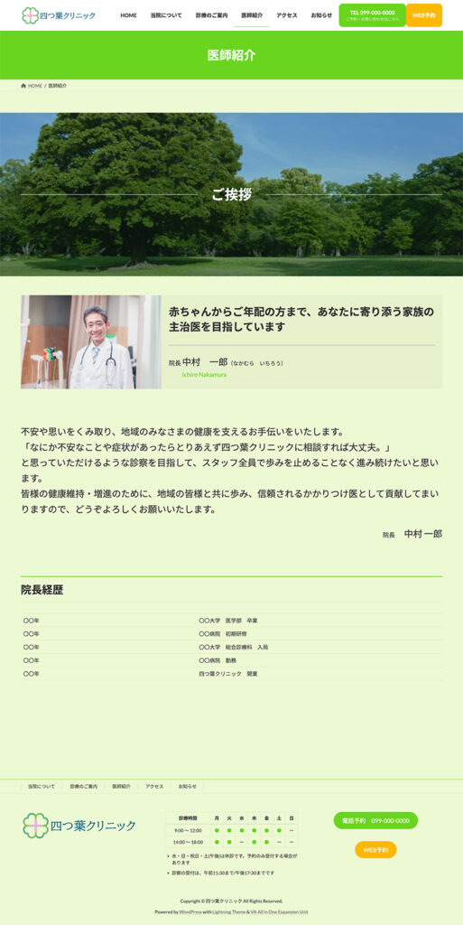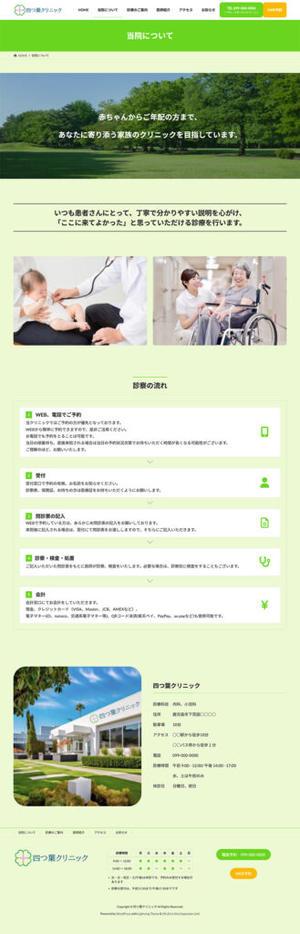 赤ちゃんからご年配の方までが幅広く利用できる、地域密着型クリニックのWebサイトです。(架空サイト)